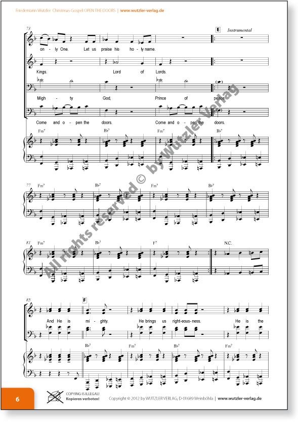 Gospelnoten / Gospelmusik im WUTZLER VERLAG: